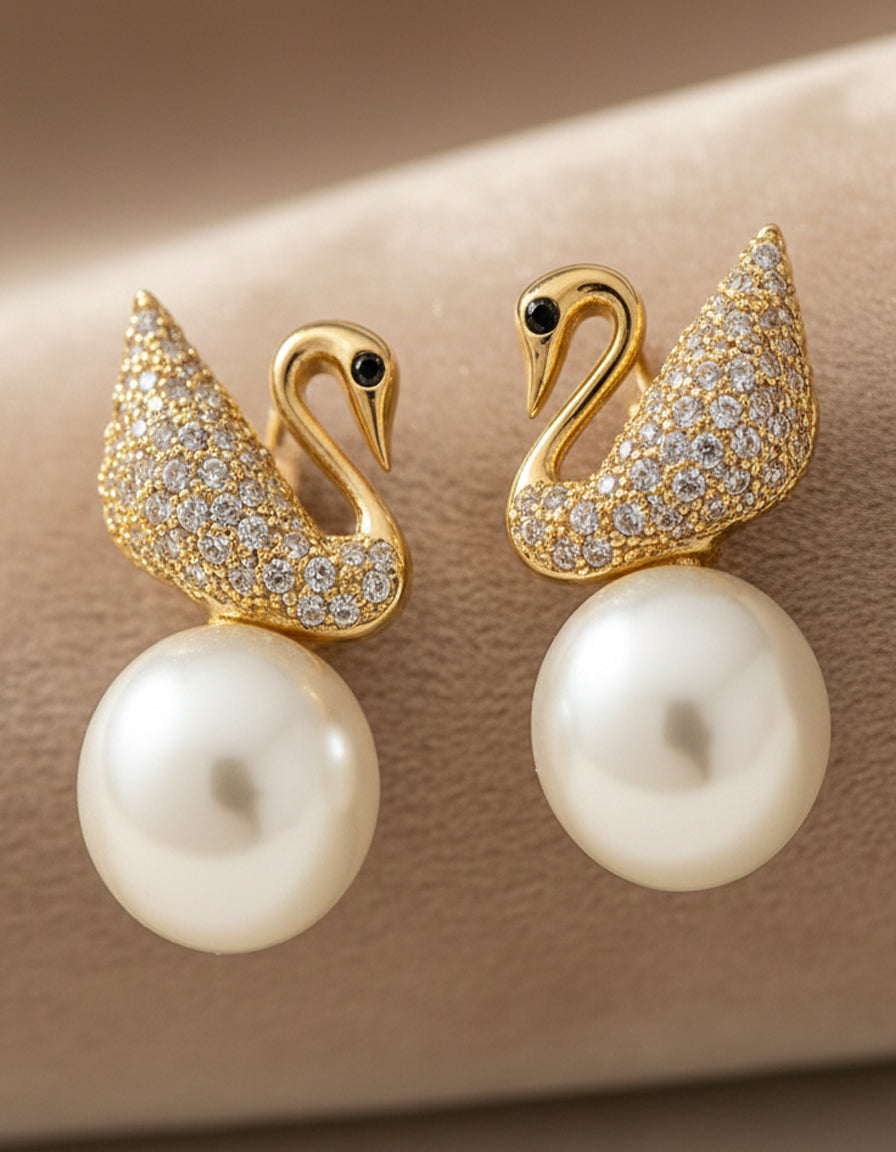Type: Earrings / Pearl Swan Studs.