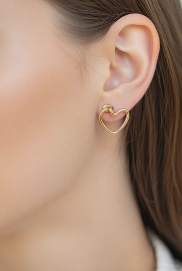 The Hand-Drawn Minimalist Heart Studs are a contemporary, open-frame accessory designed to deliver a delicate touch of romance and modern flair. They are meticulously crafted from high-quality Stainless Steel with a polished golden finish to ensure a rich, tarnish-resistant, and luxurious appearance. These earrings feature a fluid, continuous line that forms an airy heart silhouette. Consequently, the piece offers a lightweight feel, timeless elegance, and a sophisticated aesthetic.